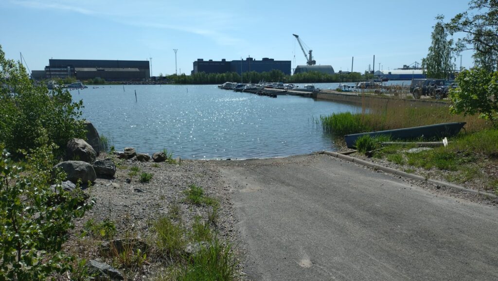 Sora-asfalttiliuska, nosto ja lasku ovat maksullisia. Lähellä myös parkkipaikka ja kahvila-ravintola.