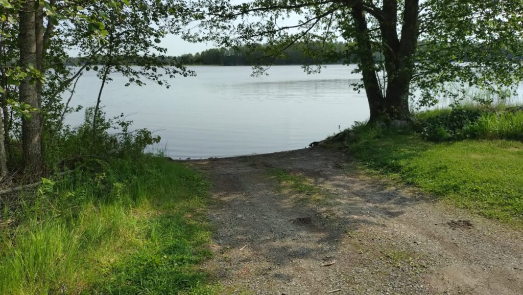 Siniveräjäntien veneenlaskupaikka Soraliuska ja parkkipaikka. Osoite: Siniveräjäntie 136, 27710 Köyliö
